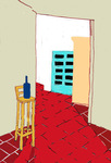 blauwe fles in deuropening
