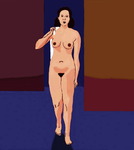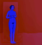 blauwe vrouw in rood